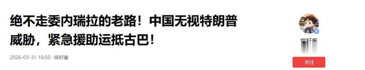 参考信息1:《毫不走委内瑞拉的老路!中国无视特朗普挟制,要紧转圜运抵古巴!》娱籽酱2026.03.31
