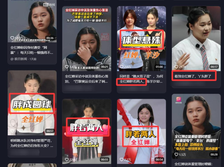 他们所谓的“可爱”,本体便是一种相当的饭圈追捧,说白了便是拜高踩低:全红婵巅峰的本事,他们把她捧上神坛,喊着“天才仙女”“为国争脸”;一朝全红婵出现少许转机,体重增多了、现象下滑了,他们就坐窝破损,恶语相向,把之前的追捧全抛在脑后,只剩下缅怀和训斥。
