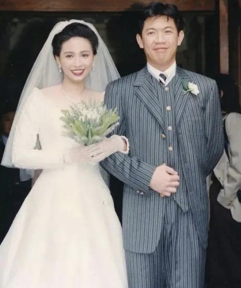 1993年与来去7年的富豪男友胡家骅授室,婚后就专心在家相夫教子很少出头。
