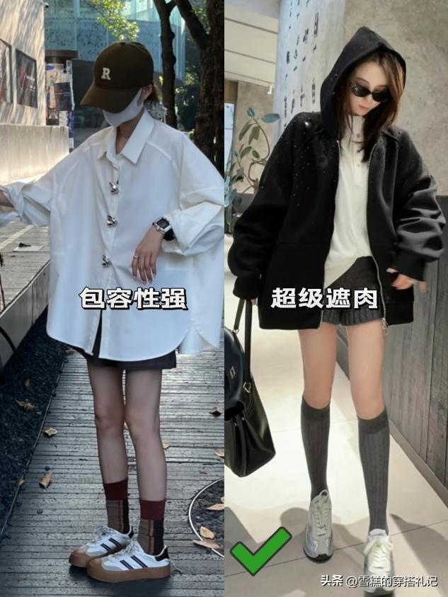 长款上衣的下摆持续装潢在大腿中间,遮住大腿最粗部位,表露了相对纤细的膝盖和小腿,倏地营造出“胸以下全是腿”的既视感。关于小个子女生,这能显赫拉长体态;关于高个子女生,则能进一步突显修长的上风。
