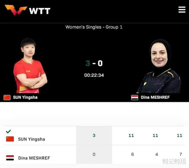 孙颖莎3:0横扫埃及主力 任意晋级16强