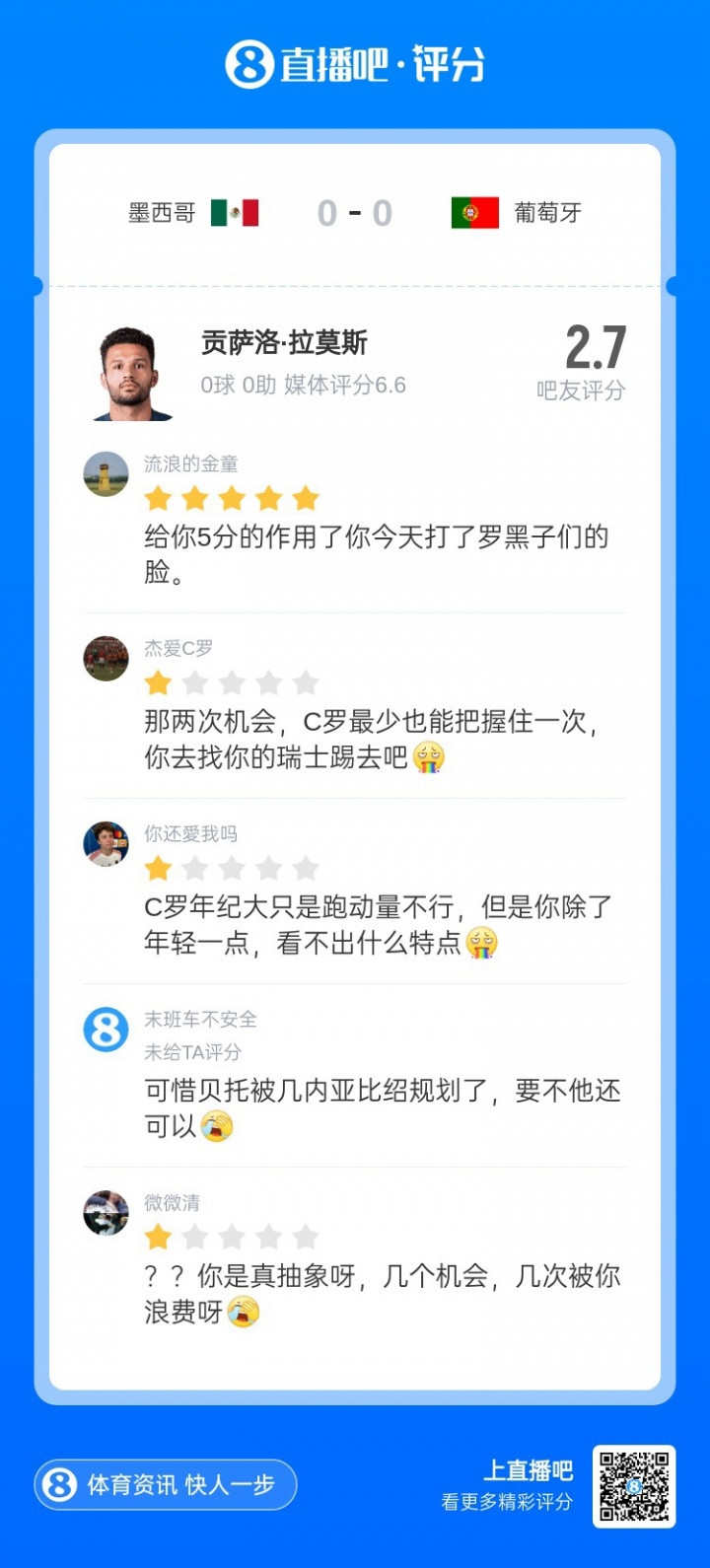 -贡萨洛·拉莫斯就该每场齐坐板凳,要么就换一个更有比赛空想的东说念主上来,因为这货不跑、不冲突,便是个木头桩子。